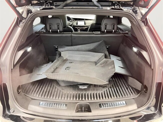 - Opens or closes when the system senses the key fob and the driver extends their foot under the left-hand side of the rear bumper over an image of the Cadillac Crest projected under the vehicle