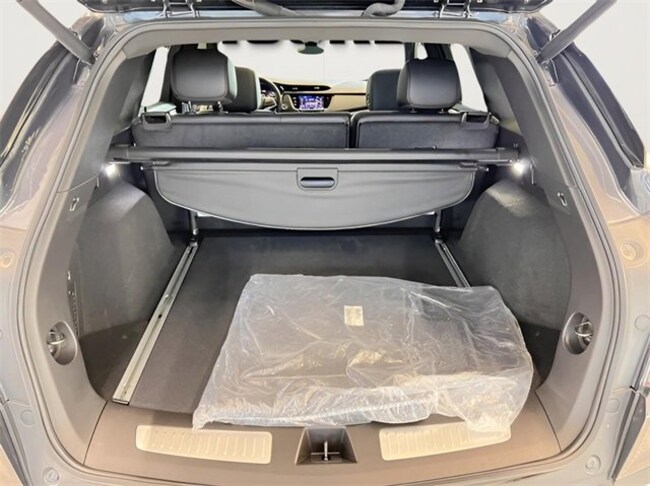 - Opens or closes when the system senses the key fob and the driver extends their foot under the left-hand side of the rear bumper over an image of the Cadillac Crest projected under the vehicle