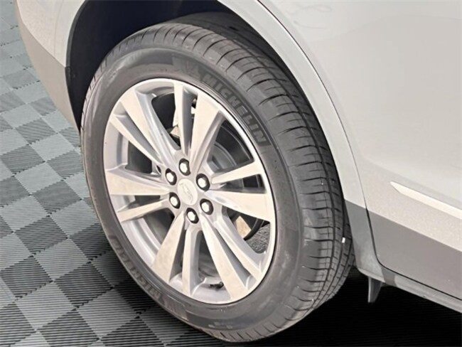 - Opens or closes when the system senses the key fob and the driver extends their foot under the left-hand side of the rear bumper over an image of the Cadillac Crest projected under the vehicle