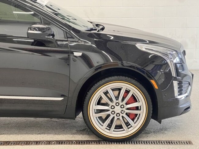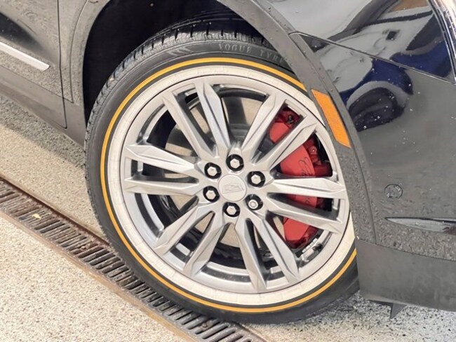 - Opens or closes when the system senses the key fob and the driver extends their foot under the left-hand side of the rear bumper over an image of the Cadillac Crest projected under the vehicle